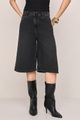 Bermuda Ampla Lado Avesso Jeans Intense Black Bermuda jeans, possui cintura alta, comprimento no joelho, cós com passantes e fechamento em botão e zíper, frente com bolsos relógio e bolsos posteriores chapados.
