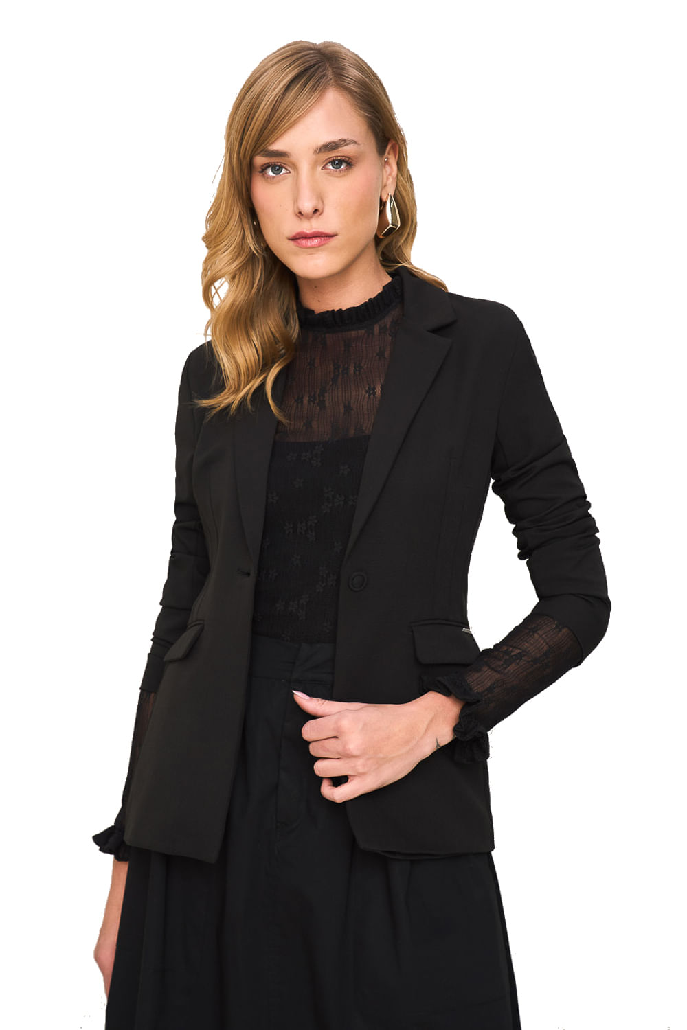 Blazer Alfaiataria Lado Avesso é o clássico e essencial para o seu closet. A peça conta com modelagem regular, gola com lapela clássica e fechamento frontal por botão único. Estrutura levemente encorpada e acabamento refinado. Não possui forro e seu tecido composto de poliéster e 10% de elastano o torna muito confortável. Possui 2 bolsos frontais.