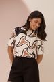 Blusa Estampada Lunender Com Mangas Curtas Em Malha De Viscose. A blusa estampada combina a maciez da malha de viscose com elastano ao caimento leve que acompanha os movimentos. Ótima escolha para deixar o look casual mais interessante sem abrir mão do conforto.