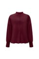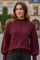 A blusa em malha texturizada surge com gola alta e nervura central que adicionam charme discreto ao look. As mangas mais soltas ganham definição pelos punhos ajustados, formando uma silhueta elegante e confortável em igual medida. Must-have.