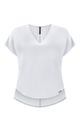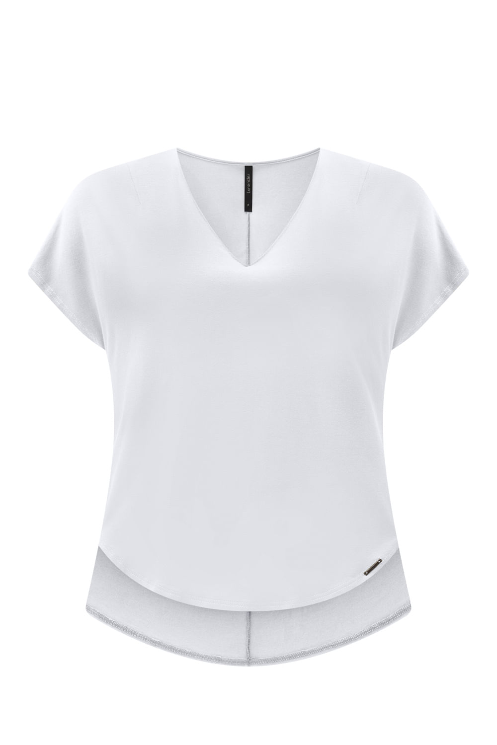 Feita com viscose responsável, Produção com menor impacto ambiental, Malha macia com elastano, Mangas curtas, Decote em V.