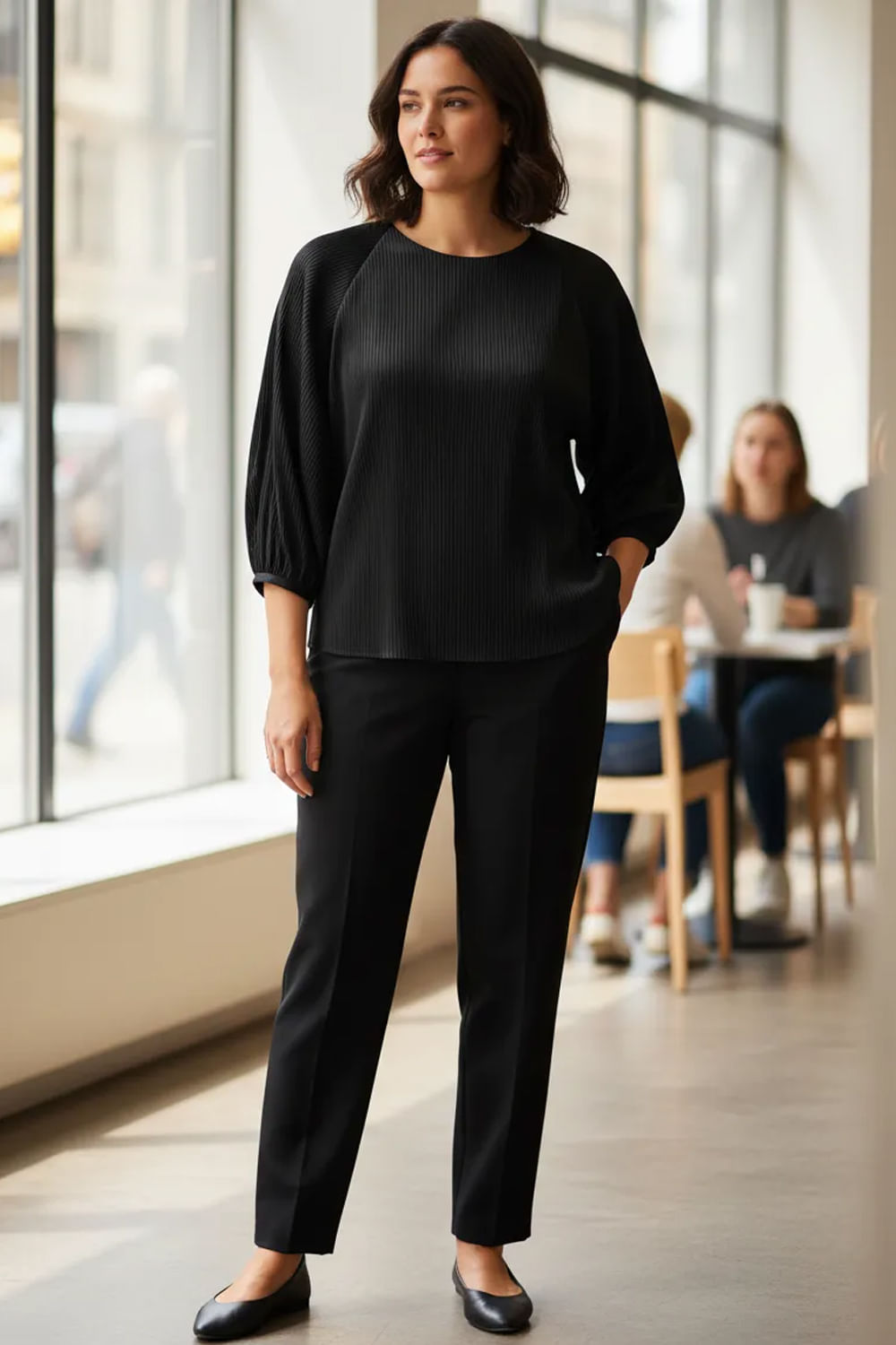 O tecido plissado de efeito delicado valoriza a blusa Lunender com charme e leveza. As mangas amplas acrescentam um ar artístico, capaz de transformar até mesmo as produções mais básicas. Experimente e sinta o impacto.