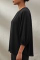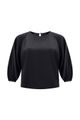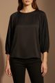 Feita em tecido plano plissado, Mangas longas, Punhos franzidos, Decote redondo, Abertura posterior com botão.