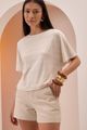 Feita com viscose responsável, Produção com menor impacto ambiental, Malha com elastano, Linho na composição, Mangas curtas, Decote redondo.