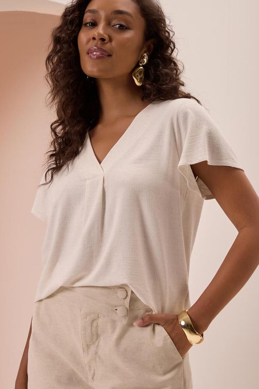 A blusa de mangas curtas em malha responsável com elastano conta com um charmoso decote em V que valoriza o colo e confere elegância. Uma escolha indispensável para composições casuais e modernas. Feita com viscose responsável, Produção com menor impacto ambiental, Malha macia com elastano, Modelagem reta, Mangas curtas, Decote em V.