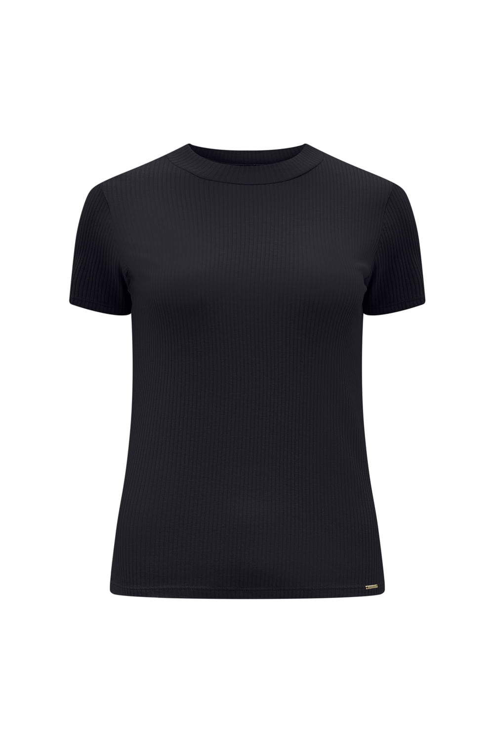 Feita com viscose responsável, Produção com menor impacto ambiental, Malha canelada com elastano, Mangas curtas, Gola redonda.