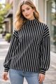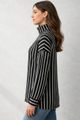 Feito em malha listrada com elastano, Aspecto sarjado, Mangas longas, Punhos ajustados, Cavas deslocadas, Gola alta, Aberturas laterais.