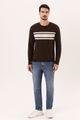 Feito em tricô, Toque macio, Listras frontais, Gola redonda, Mangas longas.