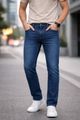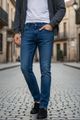 Calça Jeans Slim Masculina Com Elastano E Bolsos Azul Com elasticidade na medida, a calça jeans masculina acompanha os movimentos e garante conforto o dia todo. Seu corte slim deixa o visual mais alinhado sem comprometer a liberdade. Perfeita para qualquer plano!