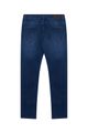 Feita em jeans com elastano, 40% de elasticidade, Modelagem slim, Bolsos funcionais, Passantes no cós, Fechamento por botão e zíper.