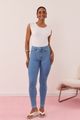 Calça Jeans Skinny Com Cintura Média, Com ótima elasticidade, a calça skinny tem toque macio e se adapta ao corpo sem incomodar. A cintura média oferece sustentação e conforto na medida, criando um caimento naturalmente elegante. Veste bem a qualquer hora.