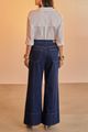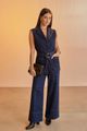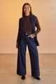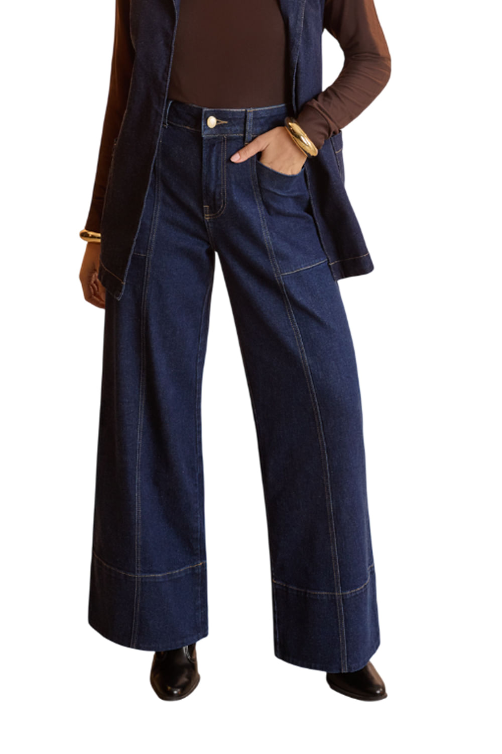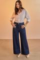 Feita em jeans amaciado com elastano, 30% de elasticidade, Modelagem super wide leg, Comprimento cropped: mais curto que o padrão, Cintura alta, Passantes no cós, Fechamento por botão e zíper.