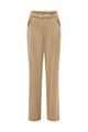 Feita com viscose responsável, Malha de alfaiataria com elastano, Padronagem risca de giz, Modelagem reta, Bolsos funcionais, Elástico posterior no cós, Braguilha e botão decorativos.