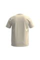Feita em malha listrada com linho, Aspecto rústico, Listras em fio tinto, Mangas curtas, Gola redonda, Estampa localizada.