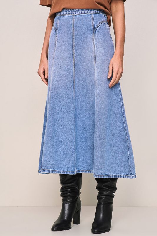 SAIA MIDI LADO AVESSO JEANS AZUL MEDIO