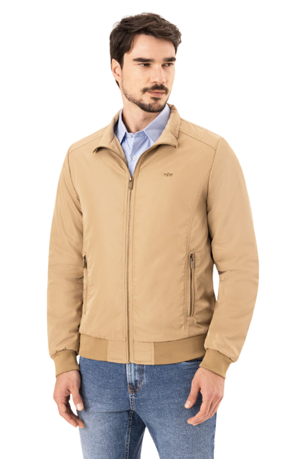 A jaqueta masculina é feita em tecido plano resistente para acompanhar qualquer jornada com conforto. Sua modelagem funcional traz gola alta e bolsos com zíper, reforçando o caráter prático e toda a atitude que o seu estilo precisa.