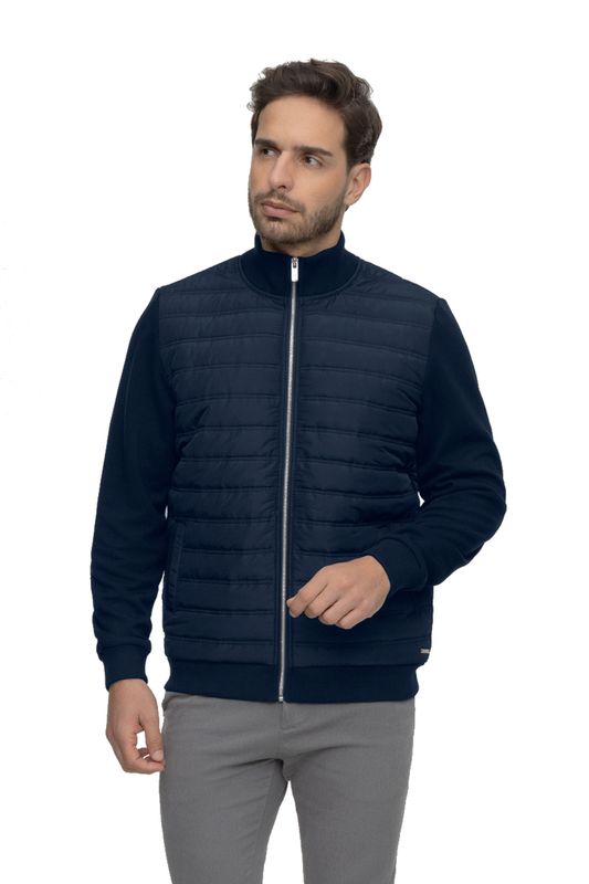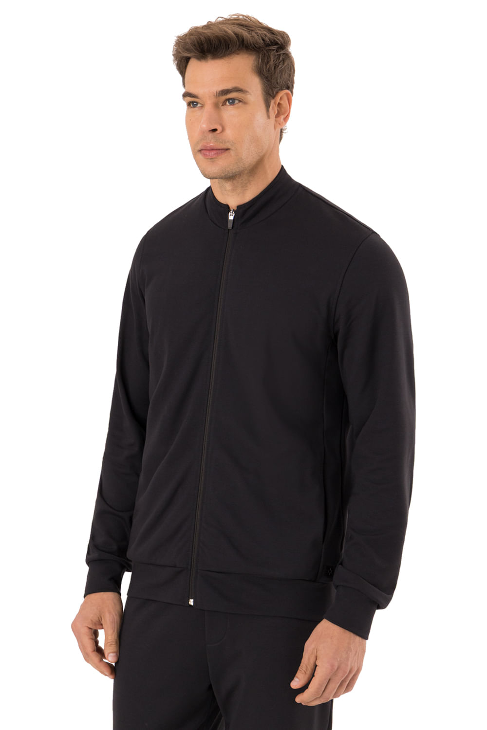 A jaqueta masculina Hangar 33 apresenta malha de dupla camada que confere estrutura e conforto superior ao vestir. O fechamento por zíper e a gola alta completam o modelo funcional. Para um dia a dia repleto de estilo.