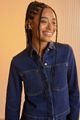 Jaqueta Jeans De Mangas Longas Com Bolsos A jaqueta de mangas longas Lunender combina a estrutura dos modelos clássicos com elementos contemporâneos. O jeans amaciado, com elastano na medida certa, reforça a proposta de conforto e eleva os looks da temporada. Curinga no closet.
