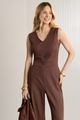 Macacão Longo Sem Mangas Em Tecido Com Linho