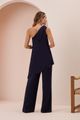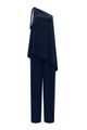 Macacão longo lunender de um ombro só com sobreposição azul. A modelagem de um ombro só com sobreposição assimétrica adiciona um toque contemporâneo a este macacão longo. Use com clutch estruturada e saltos finos para compor um look noturno repleto de personalidade. Feito com viscose responsável, Tecido plano e fluido, Comprimento longo, Modelagem de um ombro só com amarração, Fechamento por zíper, Barra assimétrica.