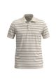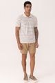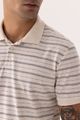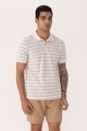 Feita em malha piquet com linho, Visual rústico, Listras em fio tinto, Mangas curtas, Gola polo, Peitilho com botões.