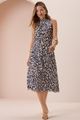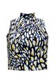 Feita com viscose responsável, Produção com menor impacto ambiental, Tecido plano e leve, Gola alta, Amarração posterior.