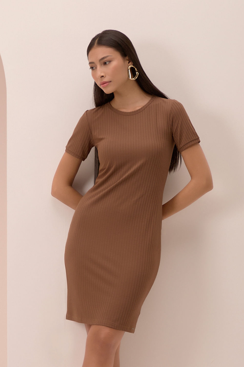Vestido Curto Lunender Básico Em Malha Canelada Com Elastano