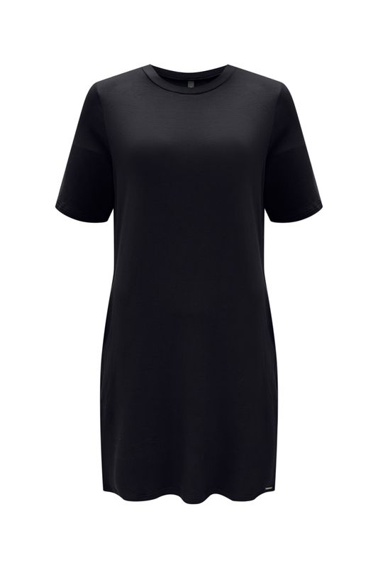 Feito com viscose responsável, Produção com menor impacto ambiental, Malha macia com elastano, Comprimento curto, Decote redondo com retilínea, Mangas curtas.