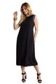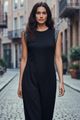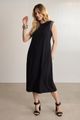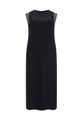 Feito com viscose responsável, Malha macia com elastano, Comprimento midi chá, Decote redondo, Detalhes em retilínea, Fenda posterior.